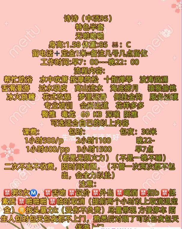 认识一个妹子,自己聊自己做的,身材还行,而且价格比较低,除了服务少点,其他没啥缺点。不过可以接吻,这点还不错。已经光顾两次了,性价比非常不错,泄火好去处。