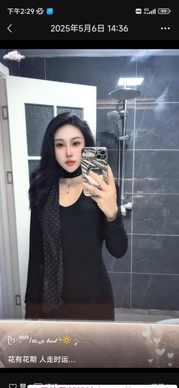 第二次找她,直接让她玩不穿衣服,我进门就舔然后干她,很配合,她本人就很是很骚的那样,色咪咪的声音好听很嗲,服务到位,情绪价值也给得很足,口活很好,吃得舔得我大鸡巴根都是湿的,边吃边叫,真受不了让她带t赶紧坐上来,结果没几下就交代了,受不了太骚了这逼,她给我的感觉就是很放松,不想在完成任务一样,很不错,蛮喜欢。